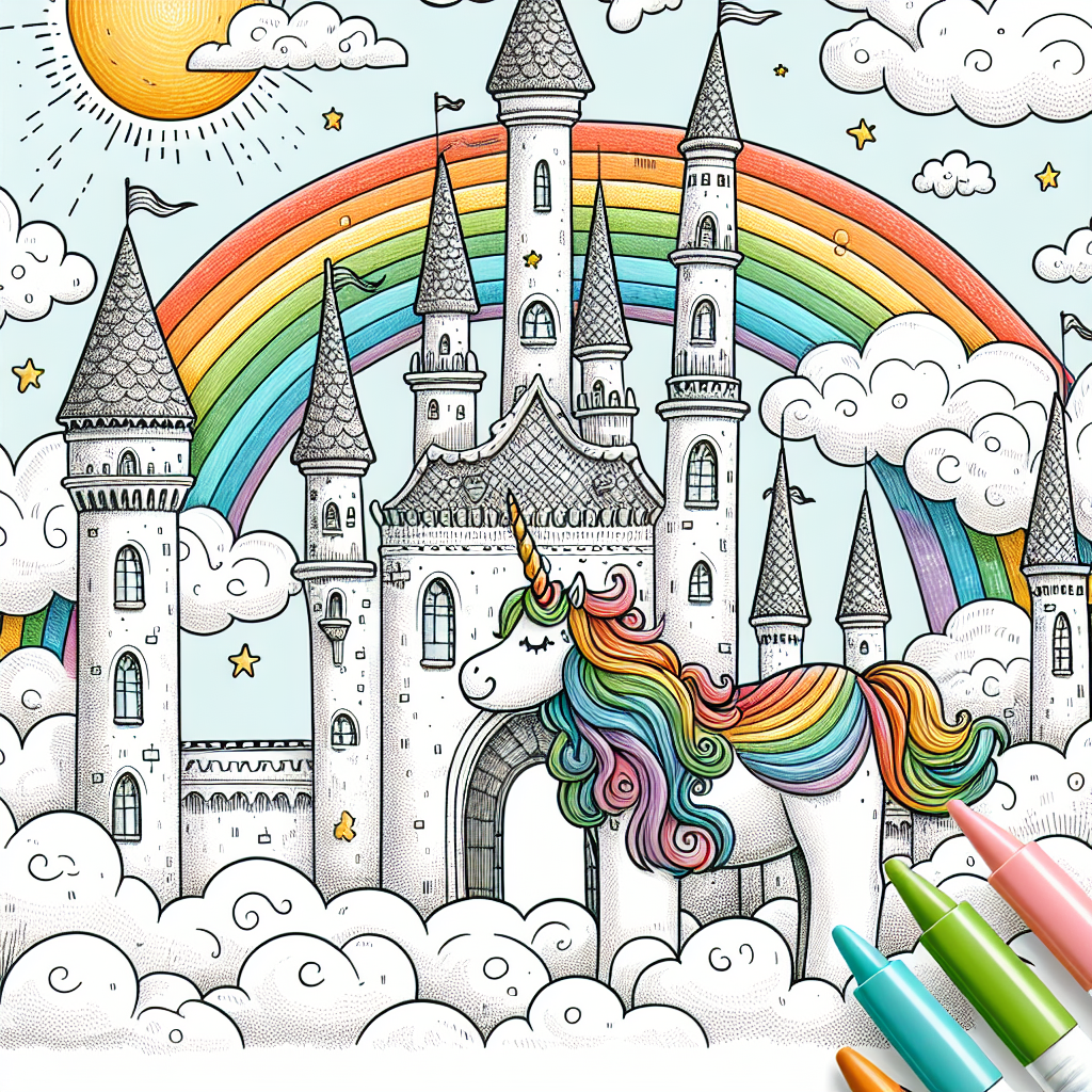 Once upon a time, high above the clouds where the rainbows are born, there stood a dazzling castle known as the Rainbow Palace. It shimmered with every color of the rainbow, and its towers tickled the belly of the sky. In this magical place lived a unicorn named Lilly, whose mane sparkled like a thousand tiny stars. Lilly was as kind as she was curious, and she loved to explore.