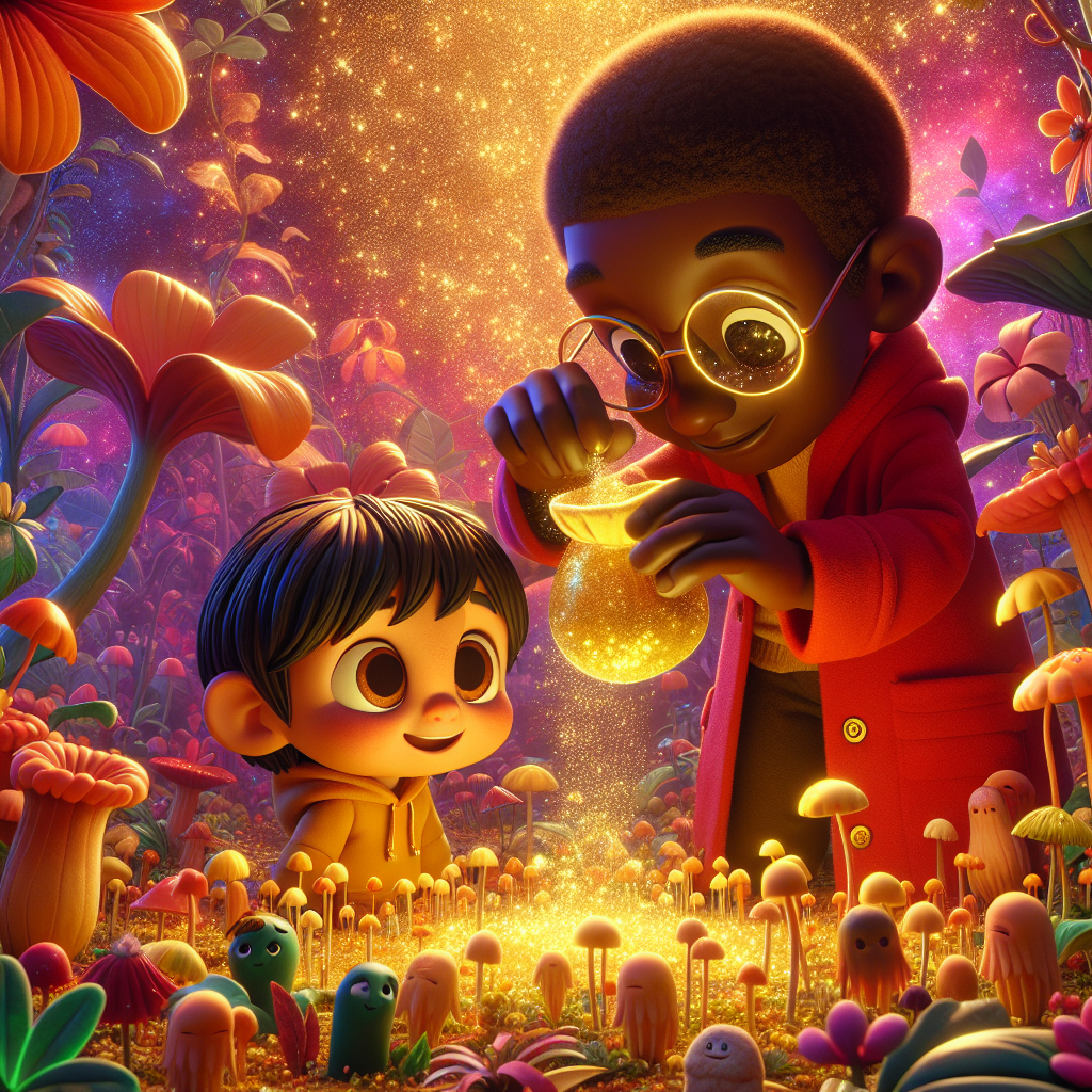Deep within a place nobody knew, there was a Secret Garden. It wasn’t a secret because it was hidden away in a cave or behind a giant wall, but because it was so full of wonder, it felt like a special secret just for those who loved it. This garden was special. Sunlight dappled through leaves the color of emeralds and jade, landing on petals that shimmered like tiny rainbows. But today, something was different. The air felt a little less bright, and the flowers, known as the Whispering Wonder-Flowers, were not whispering happy tunes. Instead, they sighed sad little sighs. Their petals, usually a riot of glowing colors, had started to look a bit dull, like someone had forgotten to polish them. Their sparkle was fading. "Oh dear," sighed a little blue flower, its voice like a tinkling bell that had lost its chime. "I feel so… dim." A nearby yellow flower drooped even lower. "Me too," it whispered, its voice a faint rustle. "My sunshine color is all tuckered out." The magic that usually buzzed and hummed in the garden seemed to be quiet. The flowers were sad, and their fading colors made the whole garden feel a little bit gloomy. It was a peculiar problem. Who could help flowers that were losing their sparkle? The garden seemed to hold its breath, waiting.