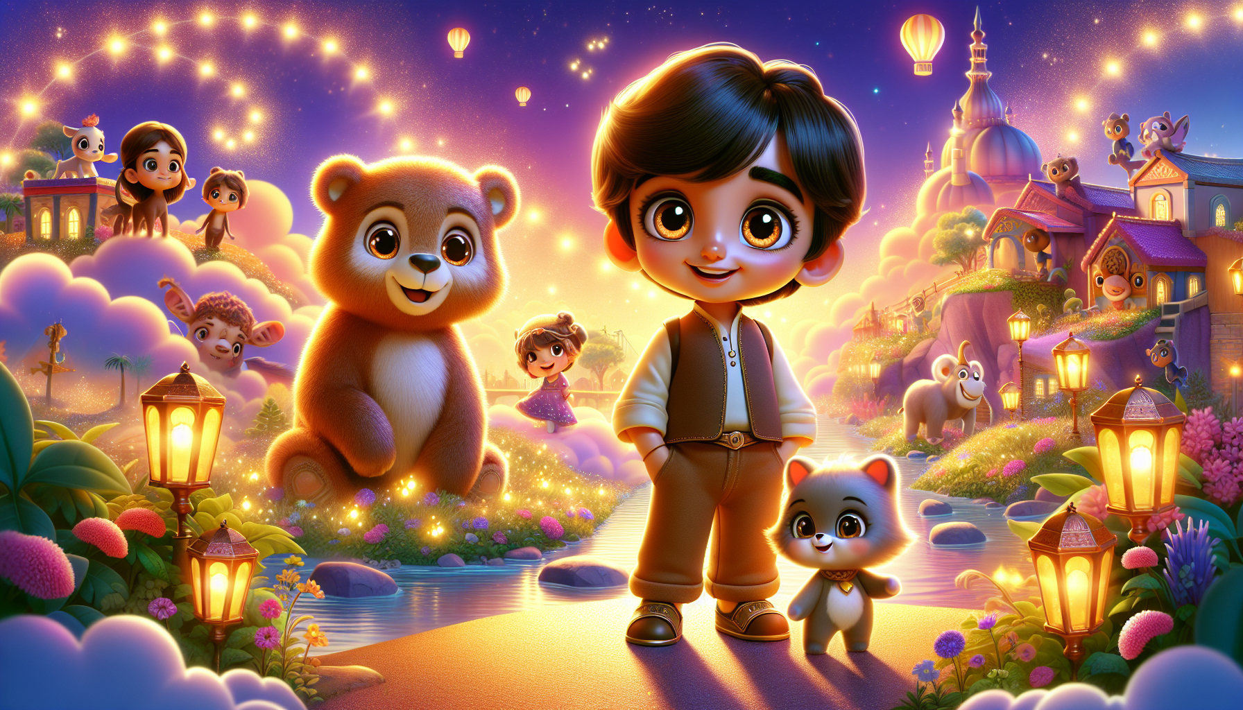 They crossed the Rainbow Bridge, which shimmered with all the colors Jahaan could imagine. Next, they reached the Forest of Giggles, where every step tickled their feet, making them laugh uncontrollably. Jahaan giggled so much, he almost forgot why they were there!